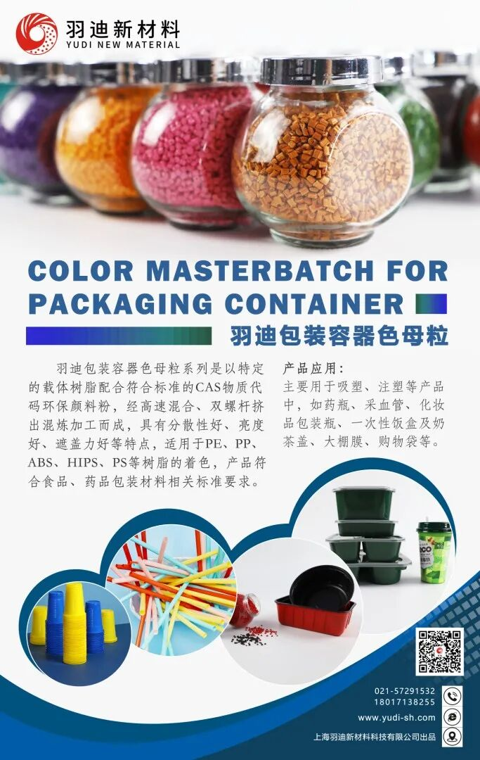 羽迪包装容器色母粒系列,主要针对医药和食品包材等领域,是以特定的载体树脂配合符合标准的CAS物质代码环保颜料粉,经高速混合、双螺杆挤出混炼加工而成,本系列产品适用于PE、PP、ABS、HIPS、PS等树脂的着色。产品优点及应用范围