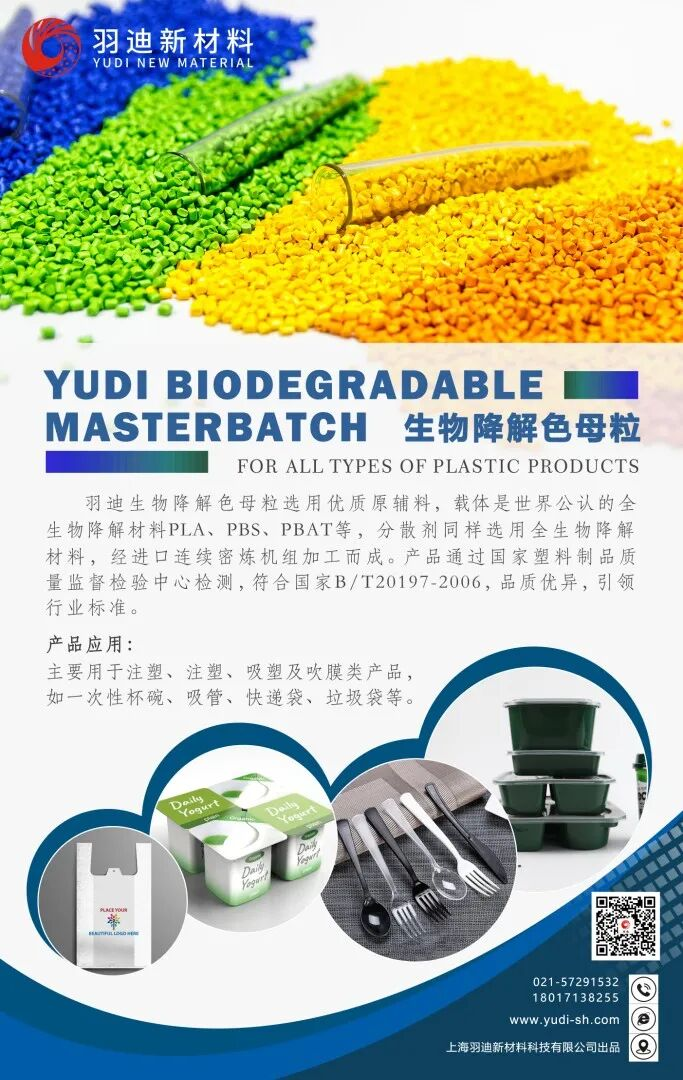 羽迪生物降解色母粒系列,选用优质原辅料,载体是世界公认的全生物降解材料PLA、PBS、PBAT等,分散剂选用的亦是全生物降解材料,经进口连续密炼机组加工而成。
